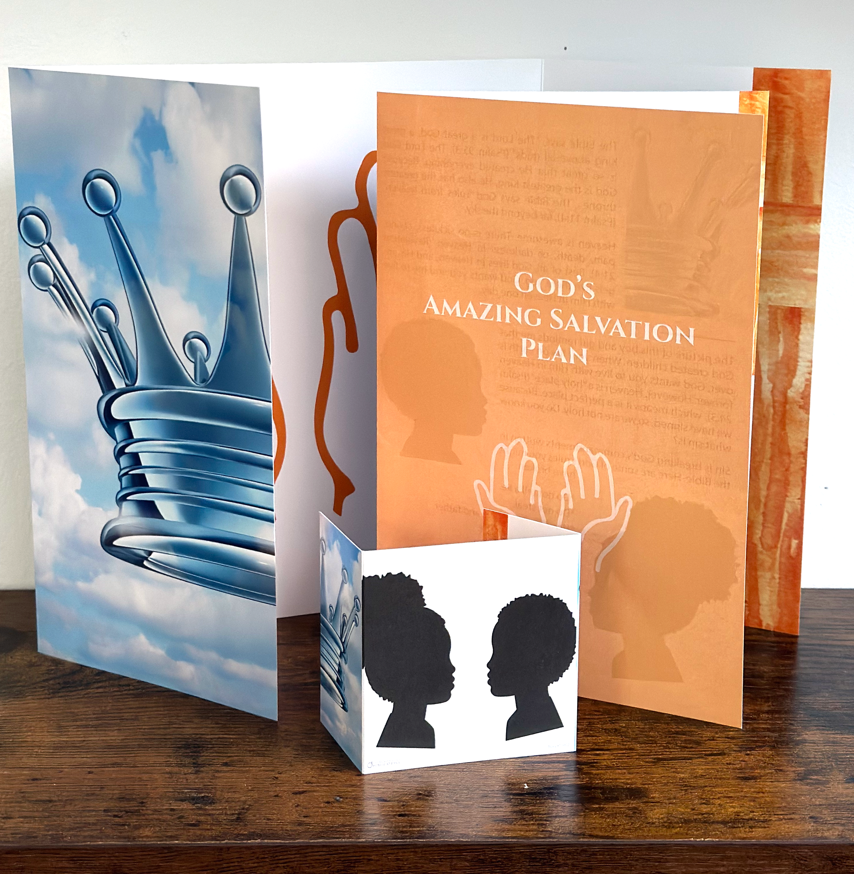 One size is for classroom use; the smaller size is for a child to use in telling the Good News to a friend.