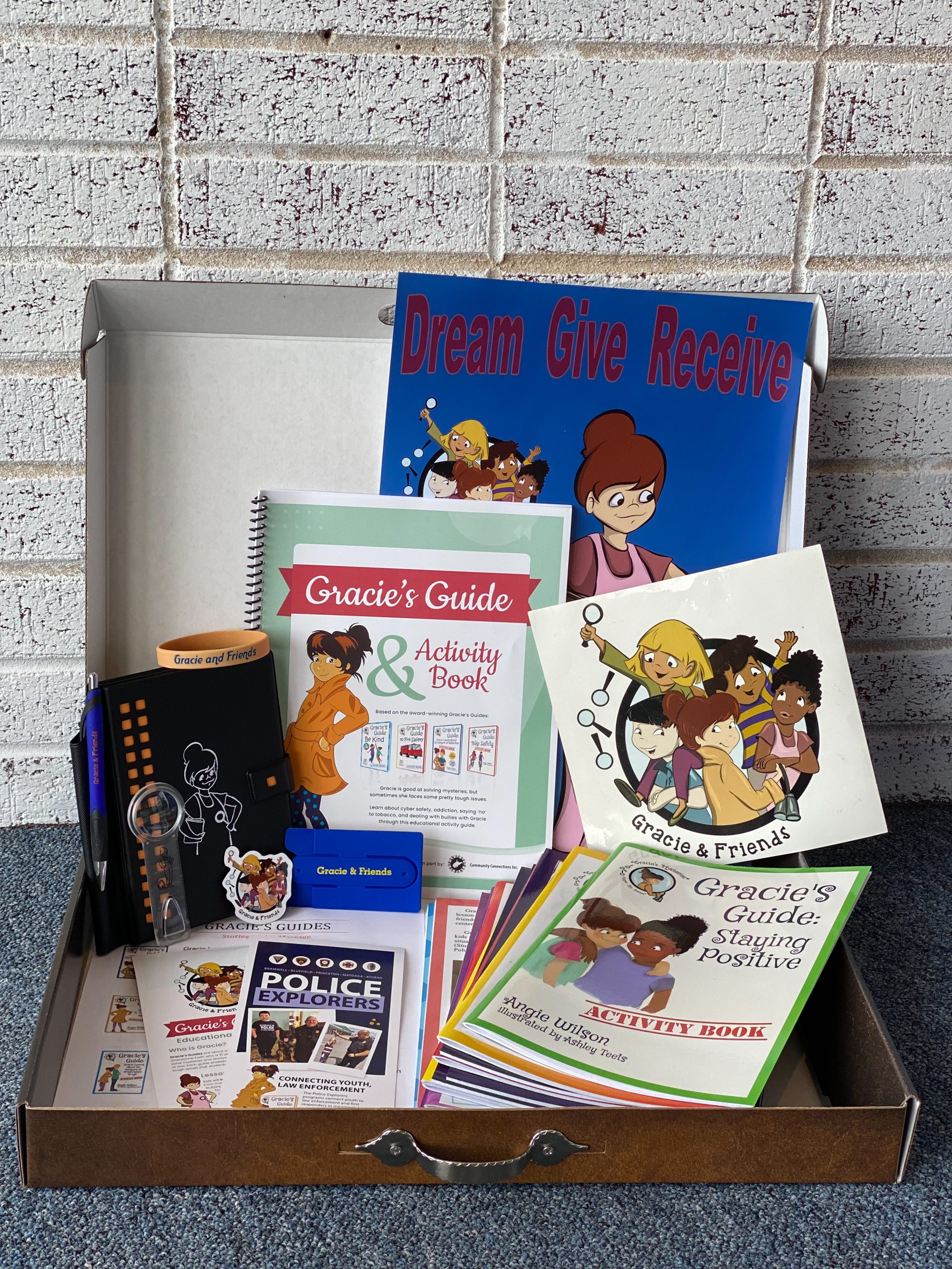 This kit contains all 14 of the Gracie’s Guides books, the Activity Guide, as well as promo materials. Kids will learn lessons in these books that will help to keep them from making some big mistakes. Topics include bullying, tobacco and vaping, addiction in the home, facing suicide, fire and police relationships, positive self-image, being kind, prescription drug safety, internet safety, dangers of texting and driving, and kids with special needs.